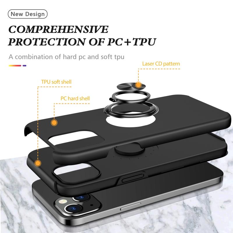 For iPhone 14 Pro Magnetic Ring Kickstand Shockproof Phone Case(Black)