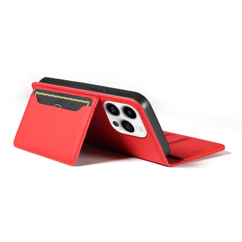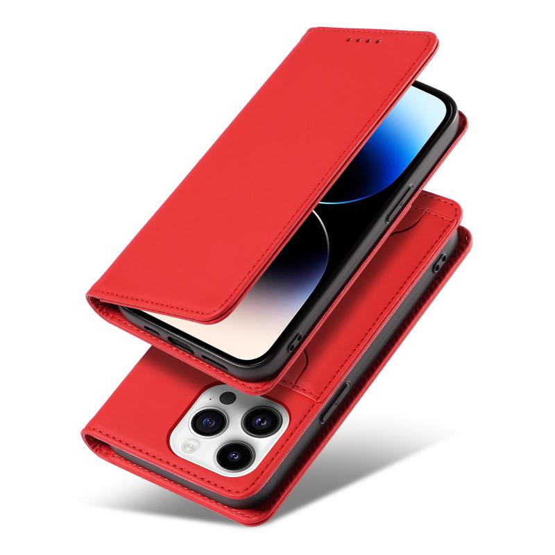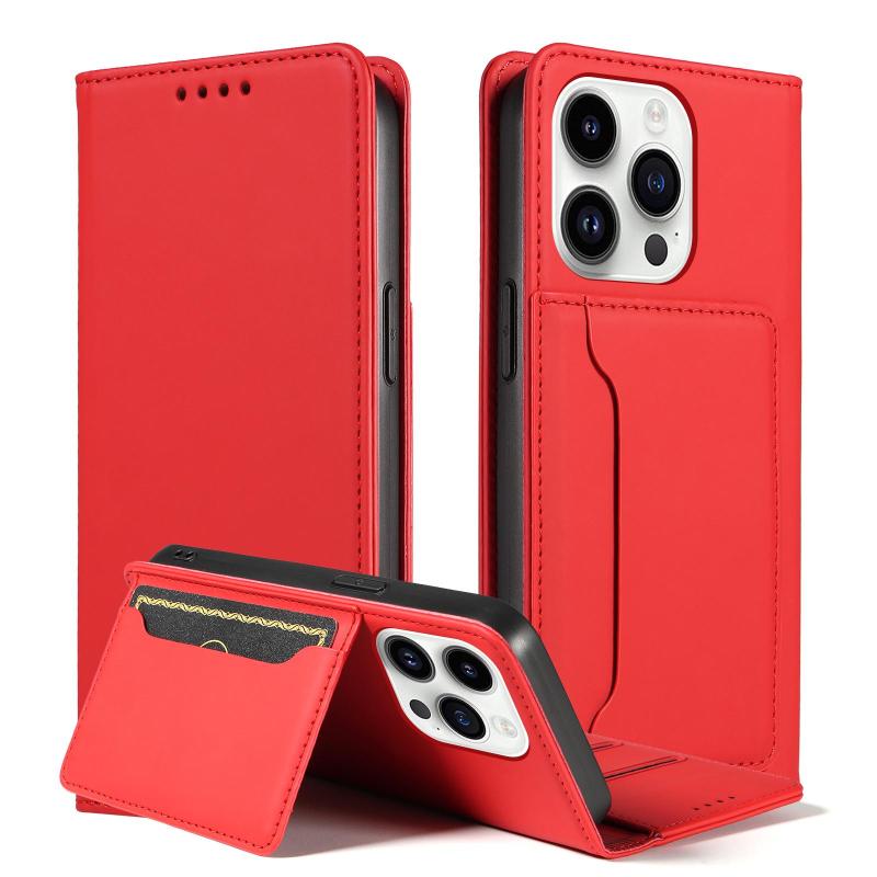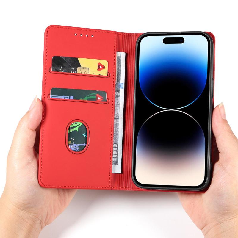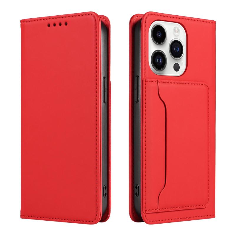 Για iPhone 14 Pro Δερμάτινη Θήκη με Κάρτες & Μαγνητική Υφή (Κόκκινο)