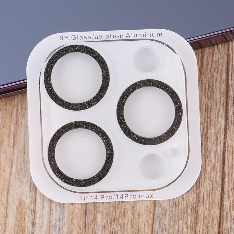 For iPhone 14 Pro Max / 14 Pro 50pcs Tempered Glass Glitter CD Texture Back Camera Film(Black)
