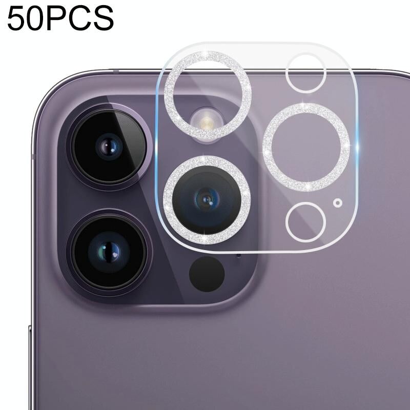 Για iPhone 14 Pro Max / 14 Pro 50 τεμάχια Επίστρωση Προστασίας Οθόνης από Tempered Glass με Λάμψη και Υφή CD για την Πίσω Κάμερα (Ασημί)