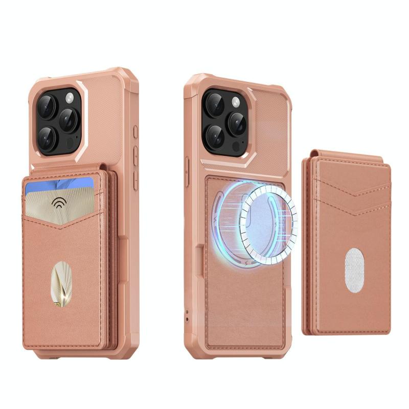 Για iPhone 14 Pro Max Δερμάτινη Θήκη με Μαγνητό και Θήκη Κάρτας MagSafe (Ροζ)