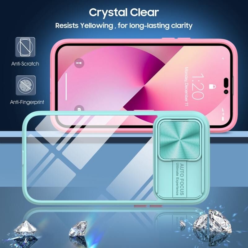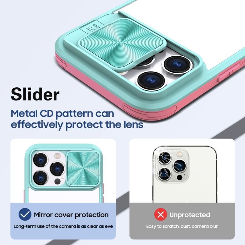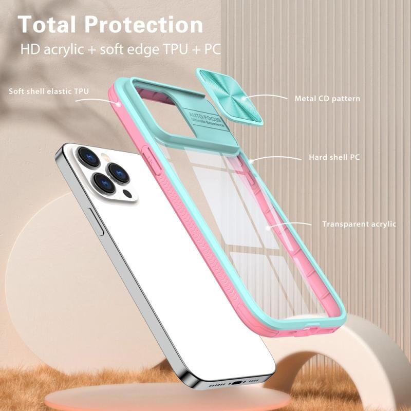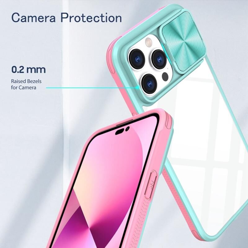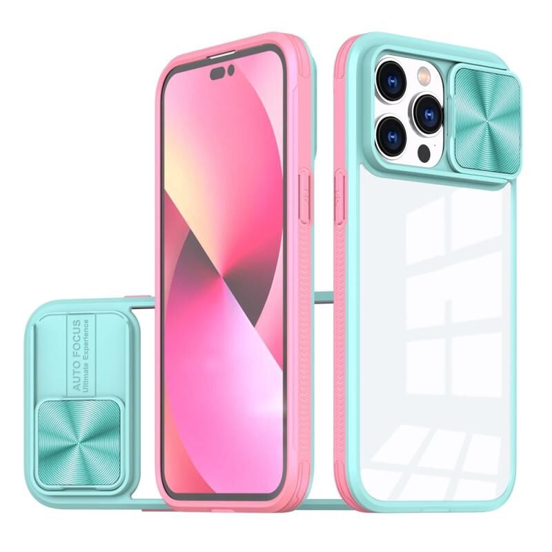 For iPhone 14 Pro Max 360 Full Body Sliding Camshield Phone Case(Blue Pink)