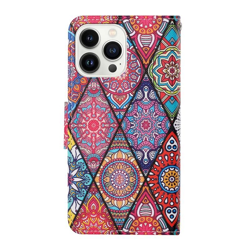 Θήκη τηλεφώνου από δέρμα με σχέδιο flip 3D σε χρώματα για iPhone 14 Pro Max (Ρόμβος Τότεμ)