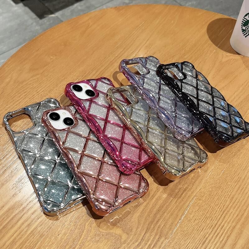 Θήκη τηλεφώνου για iPhone 14 Pro Max με τρισδιάστατη διάτρετη σχεδίαση ρόμβων, χάραξη laser, glitter και διαβαθμισμένο μαύρο χρώμα.