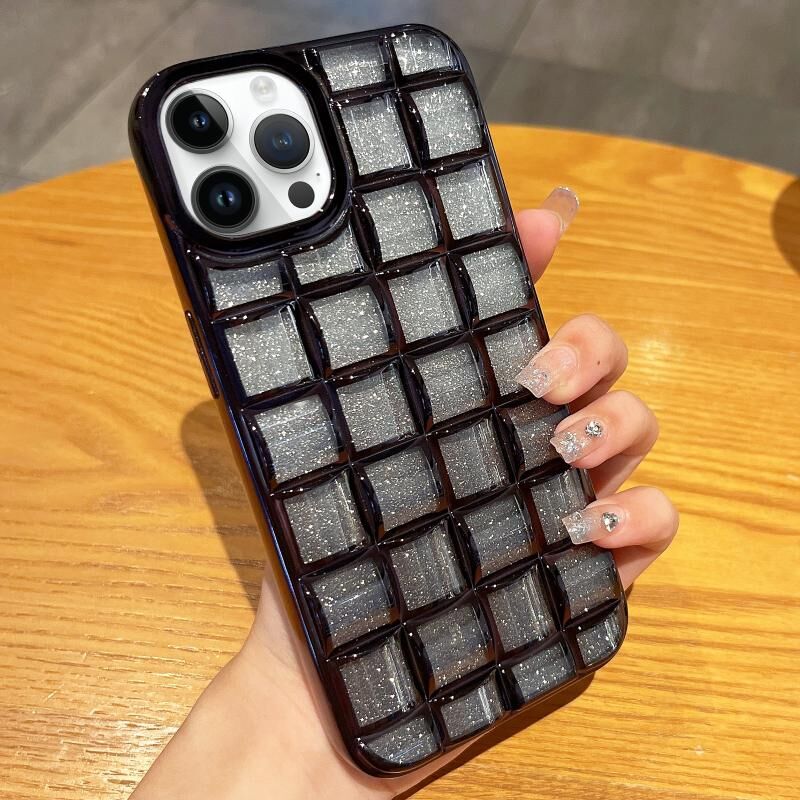Θήκη τηλεφώνου 3D πλέγματος Glitter από χαρτί για iPhone 14 Pro Max (Κόκκινο Ρόδι)