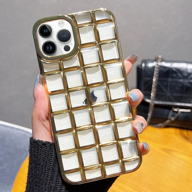 Θήκη κινητού τηλεφώνου 3D Grid για iPhone 14 Pro Max (Χρυσό)
