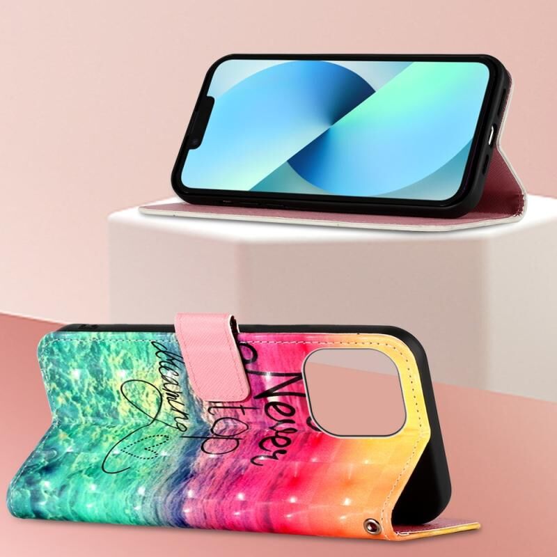 Θήκη τηλεφώνου από δέρμα με οριζόντιο άνοιγμα και τρισδιάστατη ζωγραφική για iPhone 14 Pro Max (Κυνηγώντας Όνειρα)