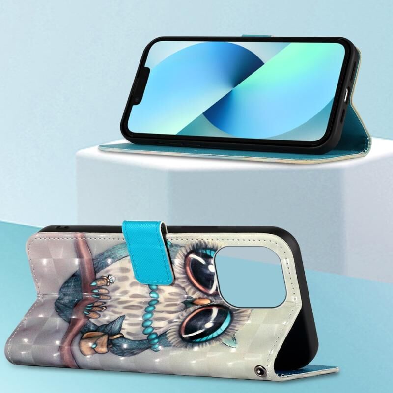 Θήκη τηλεφώνου δερμάτινη με οριζόντιο άνοιγμα και 3D ζωγραφική για iPhone 14 Pro Max (Γκρι κουκουβάγια)