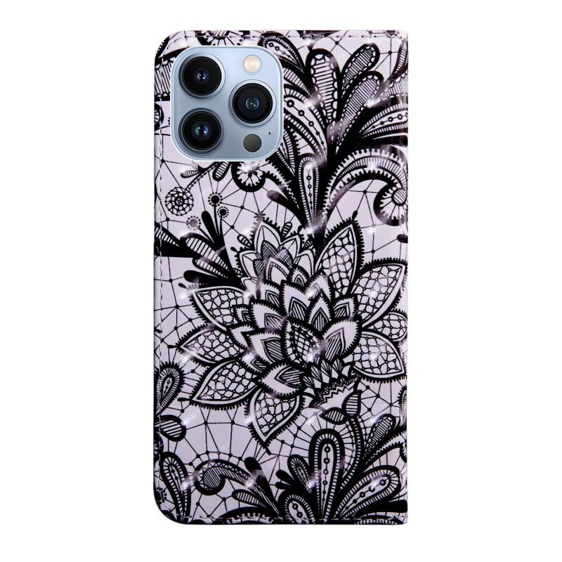 Θήκη τηλεφώνου από δέρμα με σχέδιο 3D ζωγραφικής και πολύχρωμη απεικόνιση για iPhone 14 Pro Max (Κόκκινο Λουλούδι)