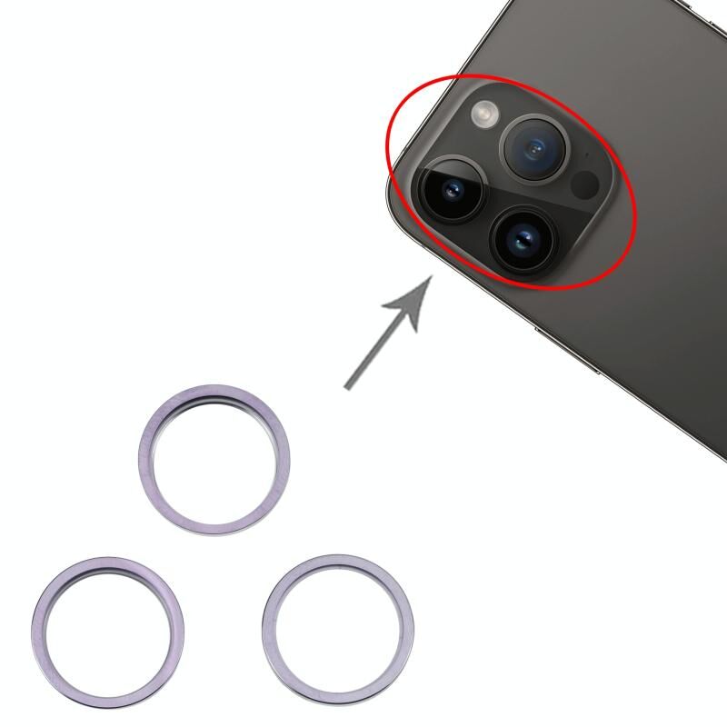 Για το iPhone 14 Pro Max 3PCS πίσω κάμερα γυάλινο φακό μέταλλο έξω προστατευτικό δαχτυλίδι στεφάνη (Deep Purple)