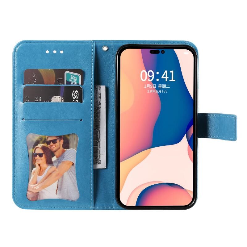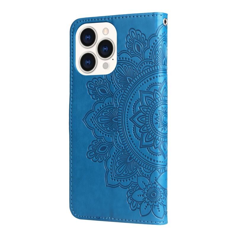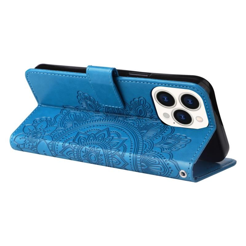 Θήκη δερμάτινη με ανάγλυφα λουλούδια 7 πετάλων για iPhone 14 Pro Max (Χρυσό Ρόδι)