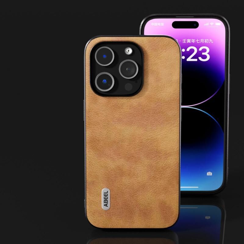 Θήκη τηλεφώνου για iPhone 14 Pro Max ABEEL, Ρετρό Υφή Δέρματος Litchi PU (Καφέ)