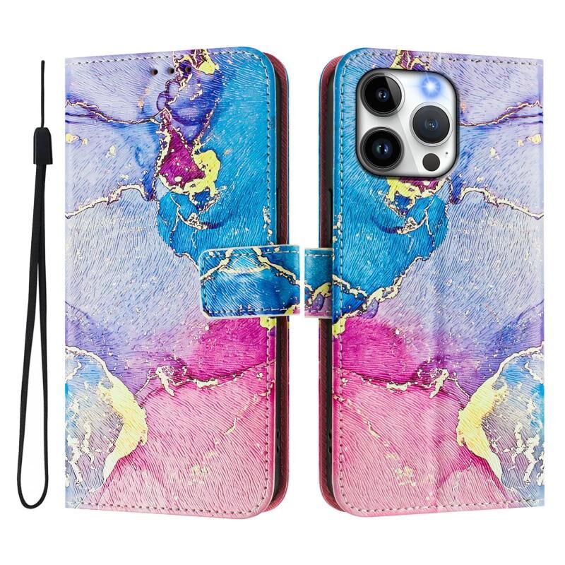 For iPhone 14 Pro Max Art Colored Drawing Pattern Leather Phone Case(Colorful marble)