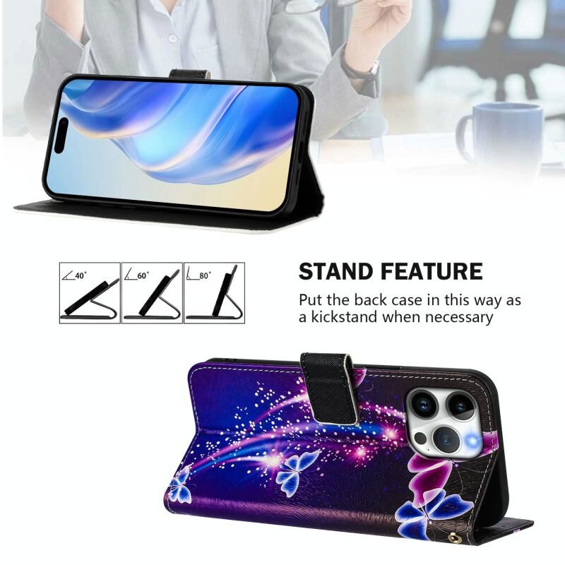 For iPhone 14 Pro Max Art Colored Drawing Pattern Leather Phone Case(Fireworks butterfly)