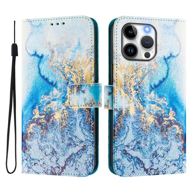 For iPhone 14 Pro Max Art Colored Drawing Pattern Leather Phone Case(Ocean marble)