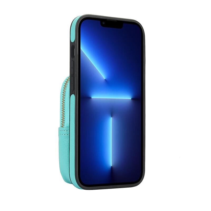 For iPhone 14 Pro Max AwQuer Crossbody Zipper Wallet Bag Litchi Leather Phone Case(Mint Green) (Awquer)