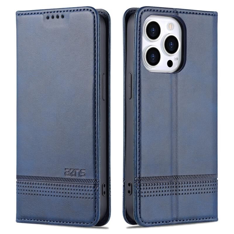 For iPhone 14 Pro Max AZNS Magnetic Calf Texture Flip Leather Phone Case (Dark Blue) (AZNS)