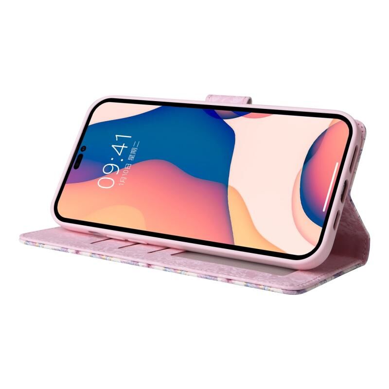 Θήκη δερμάτινη με ανάγλυφο σχέδιο (Pansies) για iPhone 14 Pro Max με τεχνολογία RFID (Μπρονζέ)