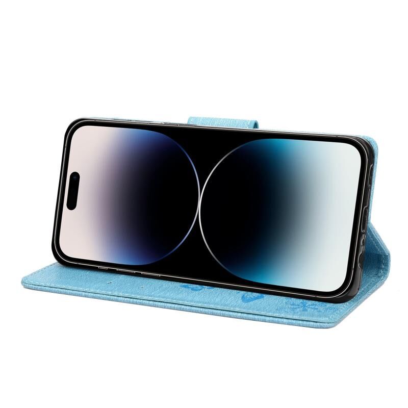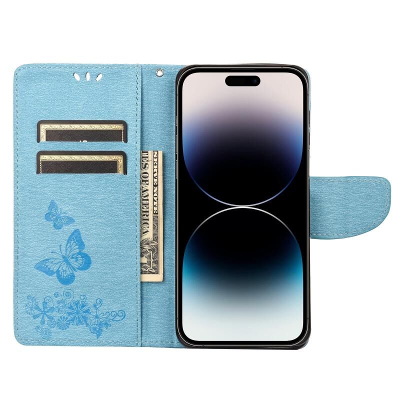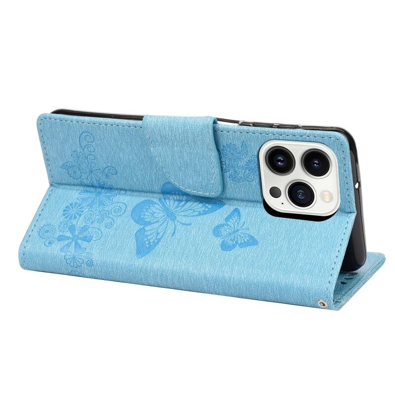 For iPhone 14 Pro Max Butterfly Embossed Horizontal Flip Leather Phone Case (Blue)
