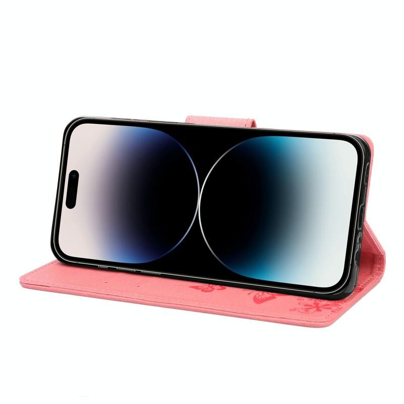 For iPhone 14 Pro Max Butterfly Embossed Horizontal Flip Leather Phone Case (Pink)