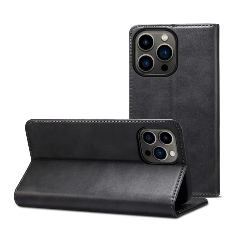 Θήκη τηλεφώνου δέρμα με οριζόντιο άνοιγμα και υφή μοσχαριού για iPhone 14 Pro Max (Μαύρο)