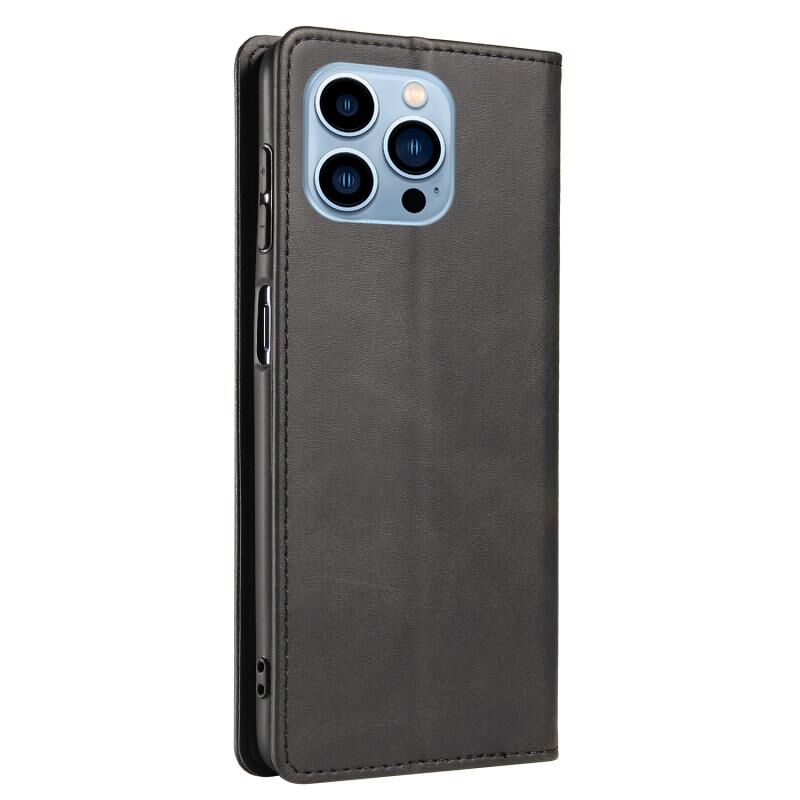 Θήκη τηλεφώνου από δέρμα με μαγνητικό κλείσιμο και υφή μοσχαριού για iPhone 14 Pro Max (Μαύρο)