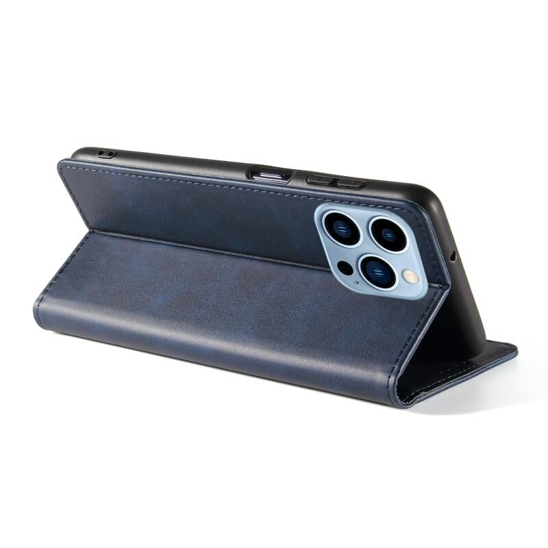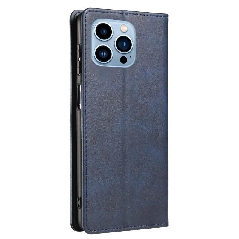 Θήκη τηλεφώνου από δέρμα με μαγνητικό κλείσιμο και υφή μοσχαριού για iPhone 14 Pro Max (Μαύρο)