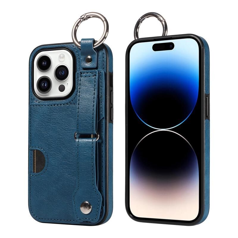 Θήκη τηλεφώνου για iPhone 14 Pro Max με υφή δέρματος μοσχαριού, υποδοχή κάρτας καρπού και δακτύλιο (Ροζ)