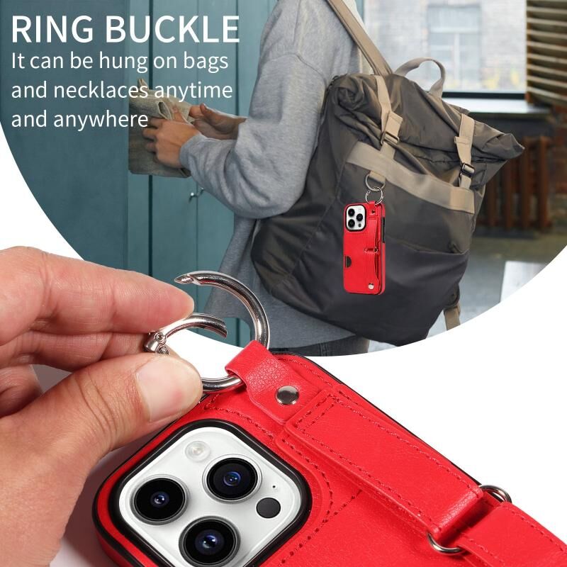 Θήκη τηλεφώνου για iPhone 14 Pro Max με υφή δέρματος μοσχαριού, υποδοχή κάρτας καρπού και δακτύλιο (Ροζ)