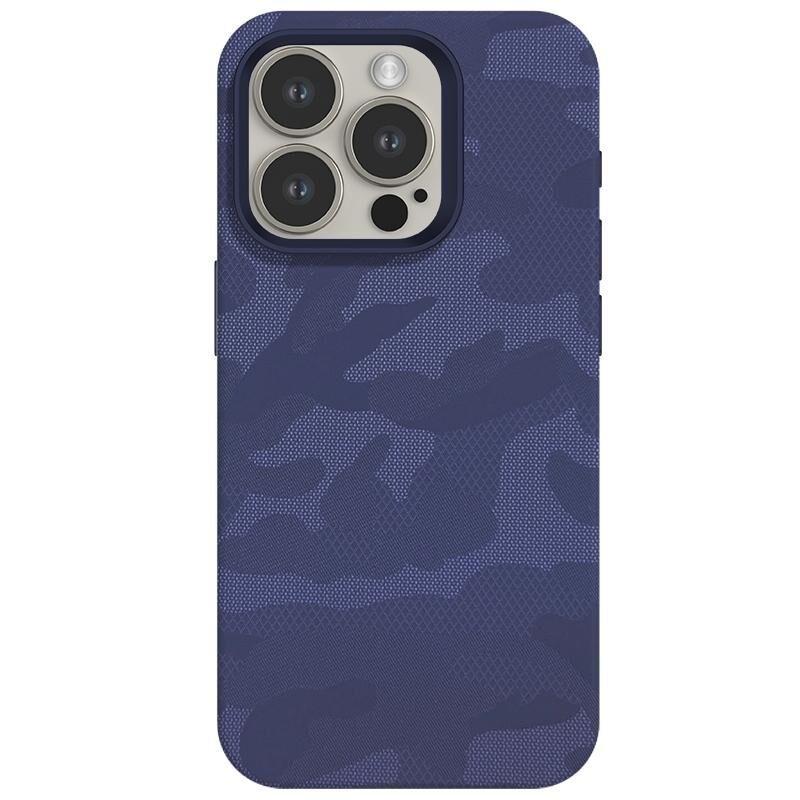 For iPhone 14 Pro Max Camouflage Ice Feel Texture MagSafe PU Hybrid PC Phone Case(Blue Purple)