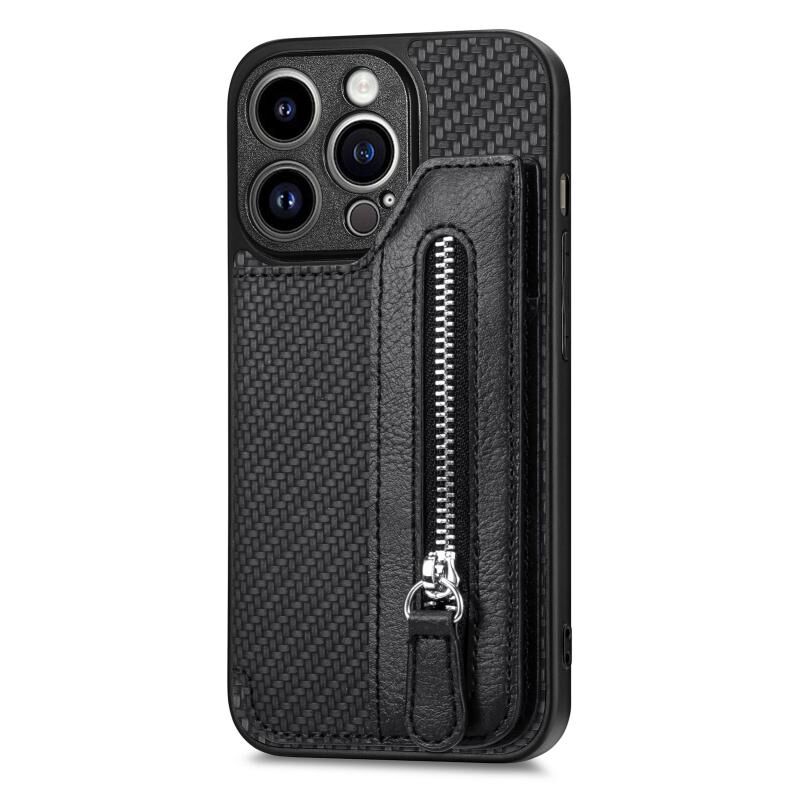 For iPhone 14 Pro Max Carbon Fiber Horizontal Flip Zipper Wallet Phone Case(Black)
