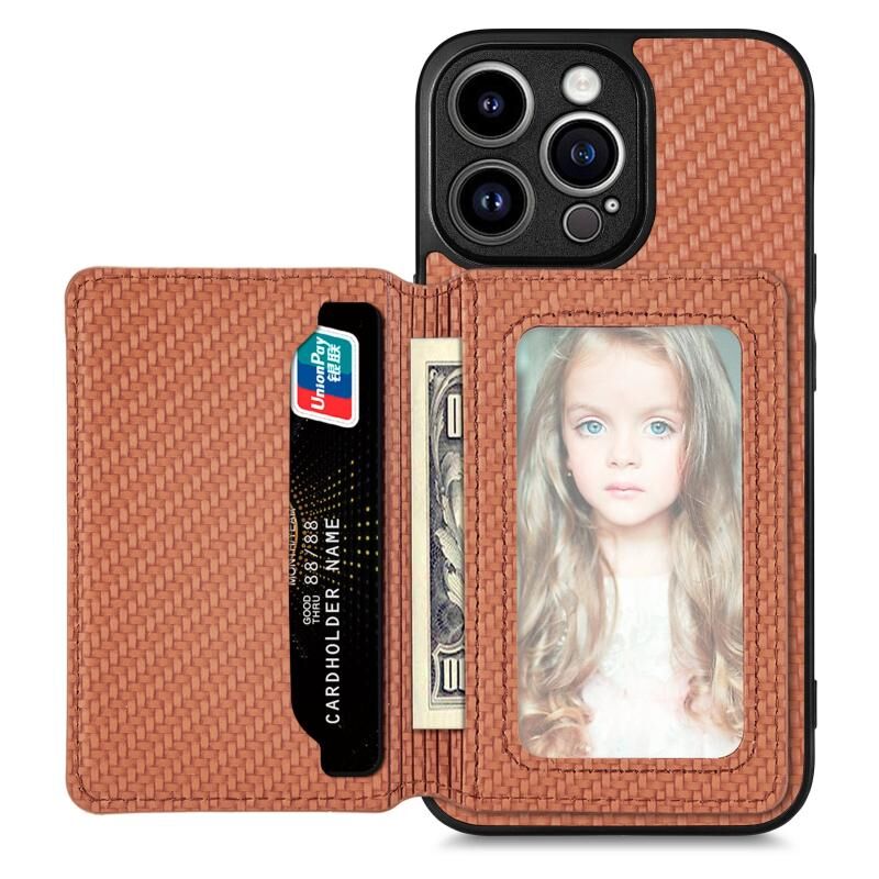 Θήκη τηλεφώνου με μαγνητική θήκη καρτών από ανθρακονήματα για iPhone 14 Pro Max (Μαύρο)