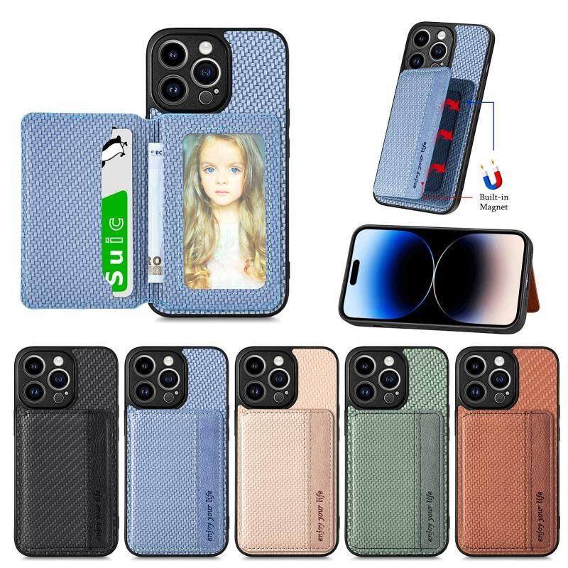 Θήκη τηλεφώνου με μαγνητική θήκη καρτών από ανθρακονήματα για iPhone 14 Pro Max (Μαύρο)
