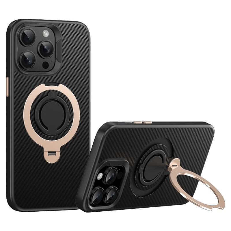 Θήκη τηλεφώνου MagSafe από ανθρακονήματα για iPhone 14 Pro Max με περιστρεφόμενη βάση 360 μοιρών (Μαύρο Χρυσό)