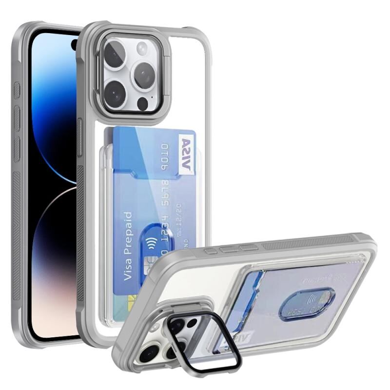 For iPhone 14 Pro Max Card Bag Holder Acrylic Hybrid TPU Phone Case(White)