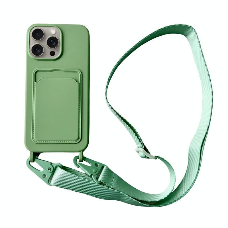 Θήκη για iPhone 14 Pro Max με υποδοχή κάρτας, υγρή σιλικόνη με κορδόνι (Μαύρο)