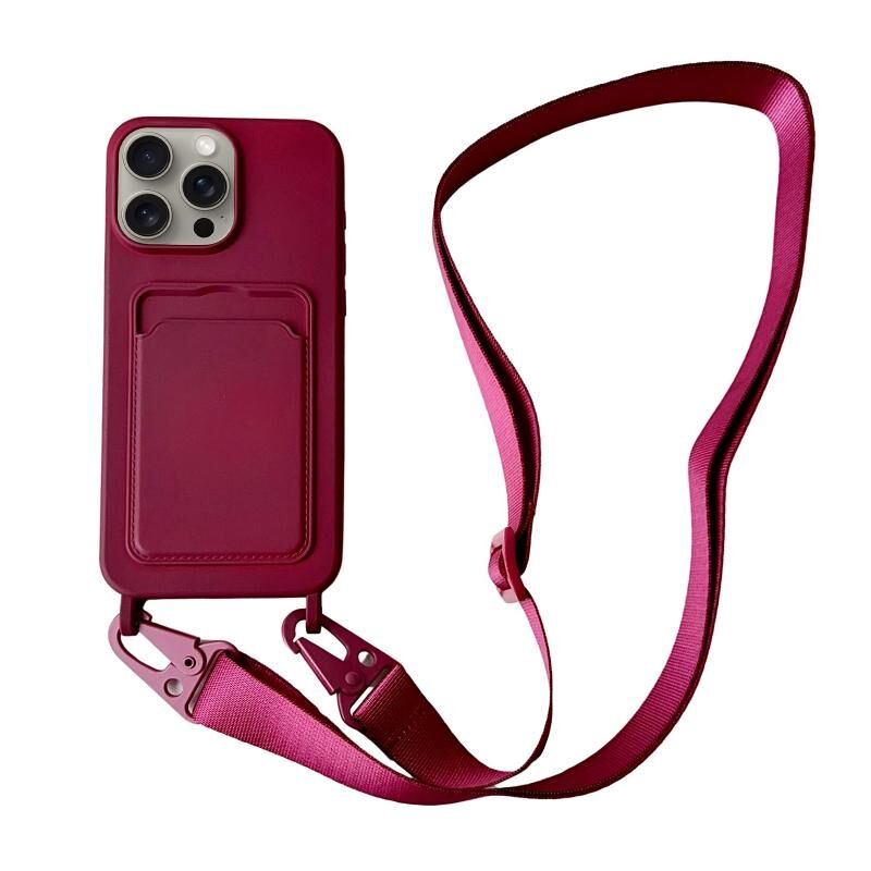 Θήκη για iPhone 14 Pro Max με υποδοχή κάρτας, υγρή σιλικόνη με κορδόνι (Μαύρο)