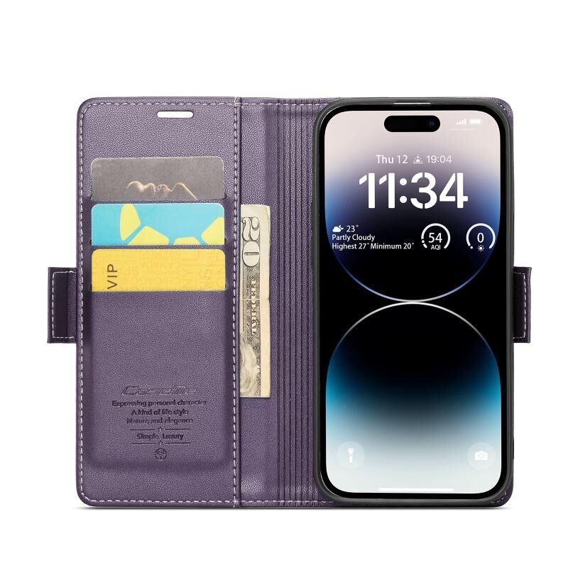 For iPhone 14 Pro Max CaseMe 023 Butterfly Buckle Litchi Texture RFID Anti-theft Leather Phone Case(Pearly Purple) (CaseMe)