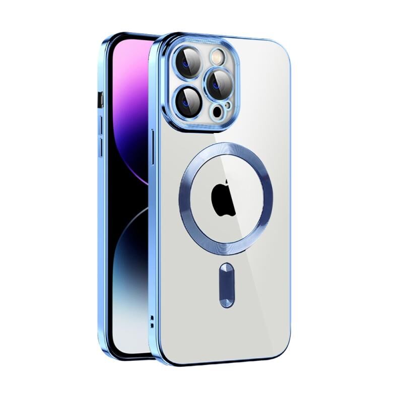 For iPhone 14 Pro Max CD Texture Plating TPU MagSafe Phone Case with Lens Film(Sierra Blue)