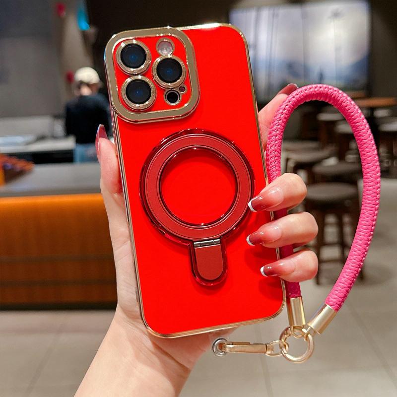 Θήκη iPhone 14 Pro Max με Λουράκι και Μεταλλική Βάση - Charm Eye Electroplating (Κόκκινο)