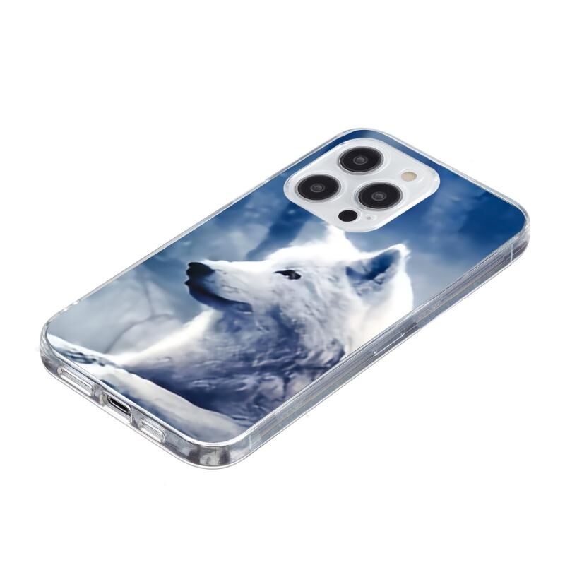 For iPhone 14 Pro Max Colorful Painting Pattern TPU Phone Case(White Wolf)