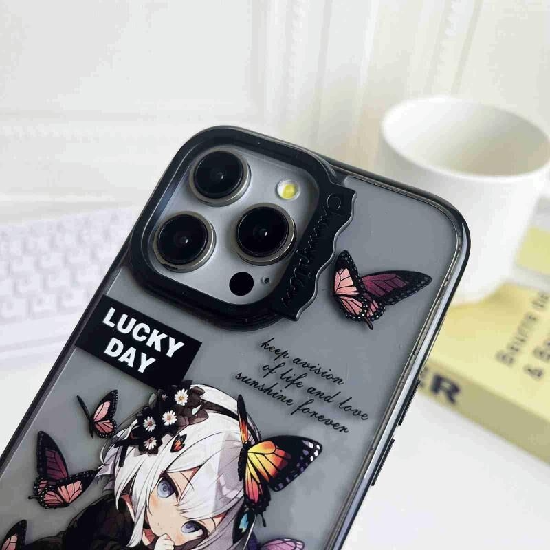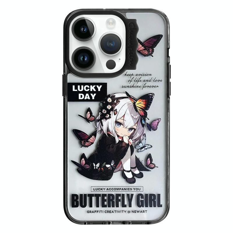 For iPhone 14 Pro Max Colorful Wave Circle Creative Pattern Phone Case(Butterfly Flower Girl)