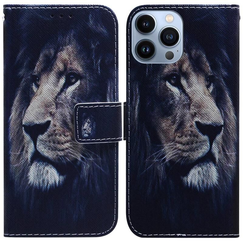 For iPhone 14 Pro Max Coloured Drawing Flip Leather Phone Case(Lion)