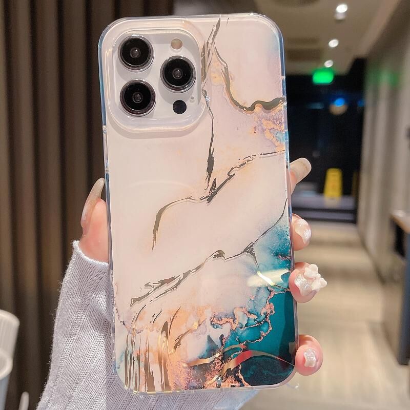 Θήκη τηλεφώνου με γυαλιστερό μαρμάρινο σχέδιο για iPhone 14 Pro Max (Ροζ Χρυσό)