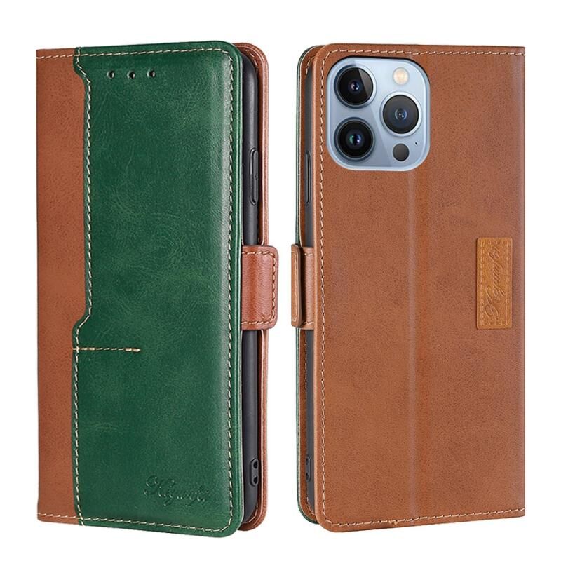 Θήκη τηλεφώνου από δέρμα με πλαϊνή αγκράφα σε αντίθετα χρώματα για iPhone 14 Pro Max (Μωβ + Κόκκινο του Ρόδου)