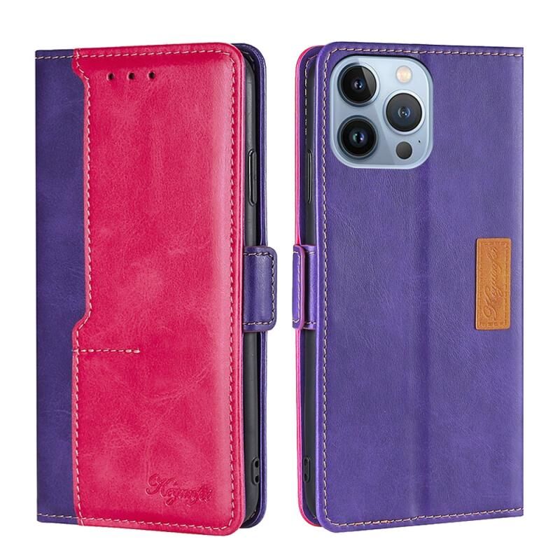Θήκη τηλεφώνου από δέρμα με πλαϊνή αγκράφα σε αντίθετα χρώματα για iPhone 14 Pro Max (Μωβ + Κόκκινο του Ρόδου)