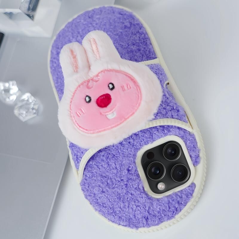 Θήκη τηλεφώνου TPU για iPhone 14 Pro Max, σχέδιο με βελούδινο κουκλάκι και παντόφλες (Κόκκινος Δράκος)