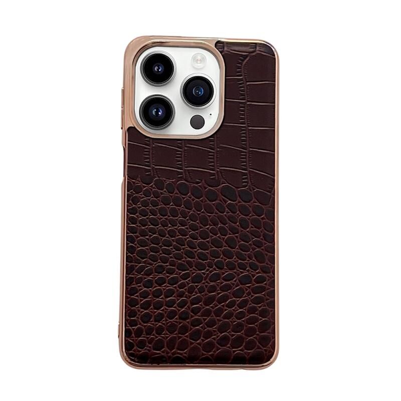 Θήκη τηλεφώνου για iPhone 14 Pro Max με υφή κροκόδειλου, γνήσιο δέρμα, νανο-επίχρυση (Καφέ)