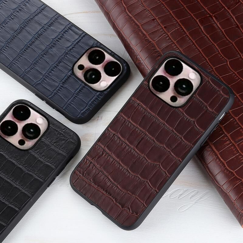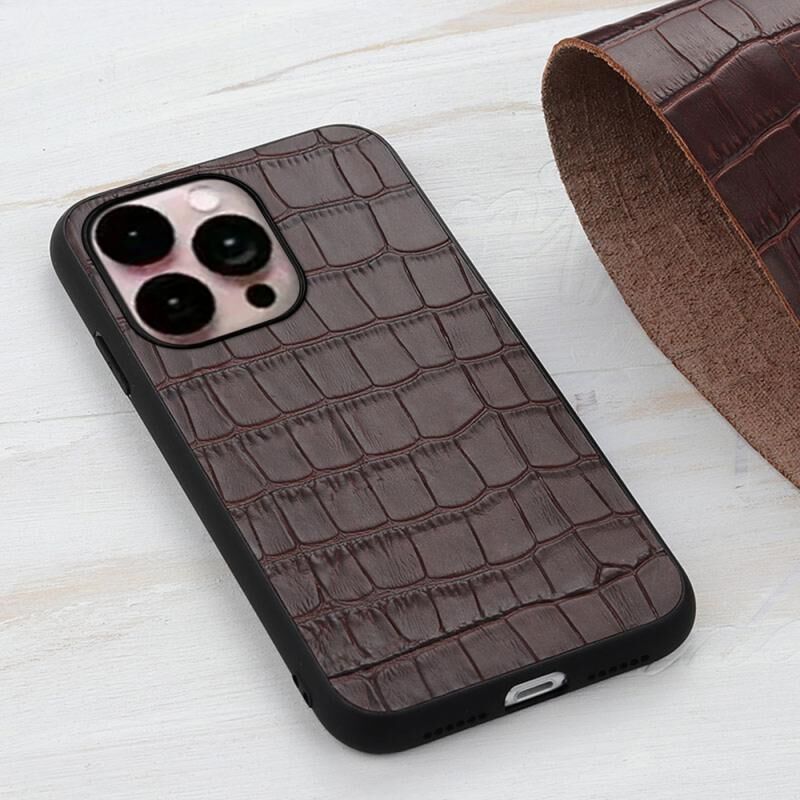 Θήκη τηλεφώνου από γνήσιο δέρμα με υφή κροκόδειλου για iPhone 14 Pro Max (Καφέ)