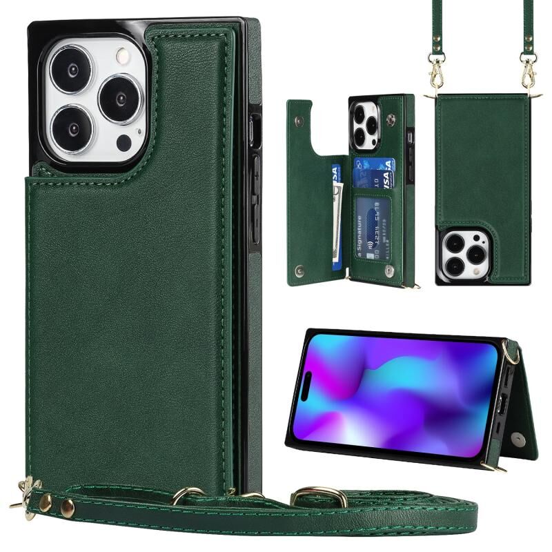 For iPhone 14 Pro Max Cross-body Square Dual-Buckle Card Flip Wallet Phone Case(Green)